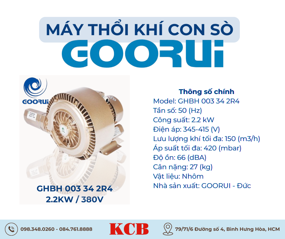 Máy thổi khí con sò Goorui GHBH 003 34 2R4 – 2.2kW: Giải pháp áp lực cao cho hệ thống công nghiệp