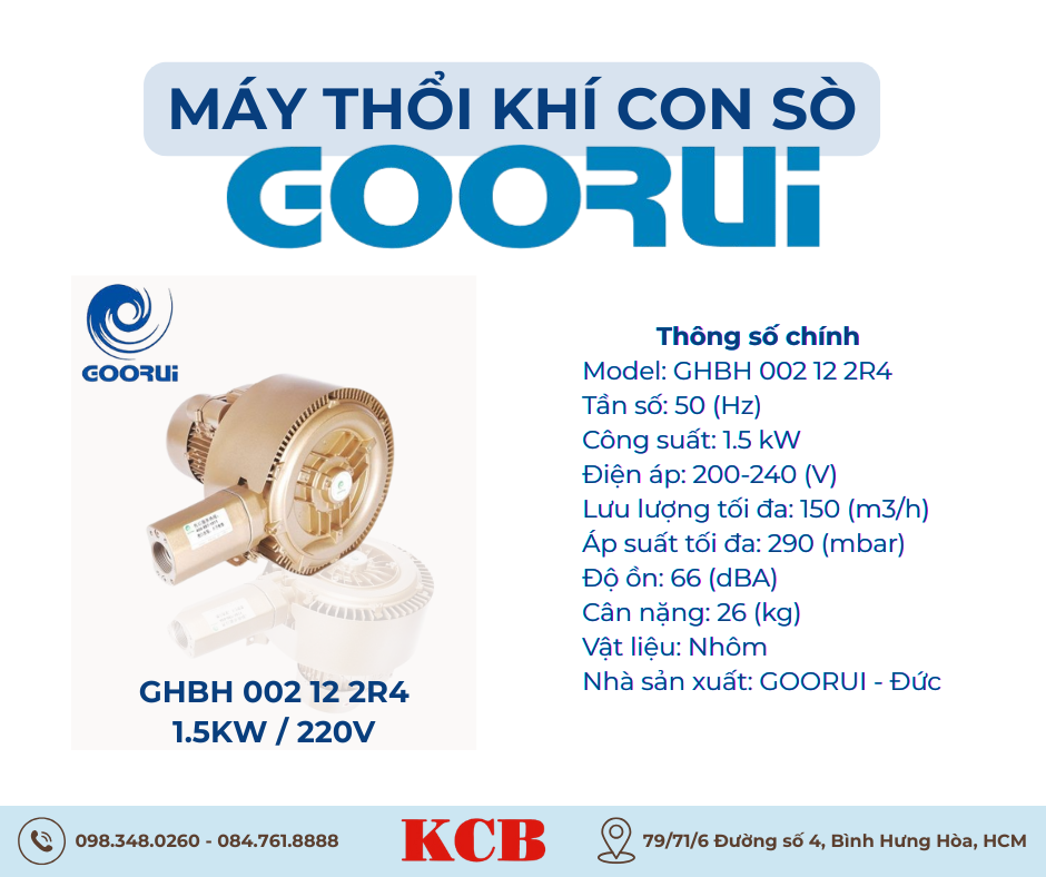 Máy thổi khí con sò Goorui GHBH 002 12 2R4 – 1.5kW | Công nghệ Đức – Vận hành mạnh mẽ & bền bỉ